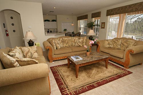 Beyond is a screened deck area with a heated south facing 30 foot pool and spa with sun loungers, overlooking a lake and a wooded conservation area. There are alarms on all doors leading to the pool and a child safety fence can be erected if preferred.