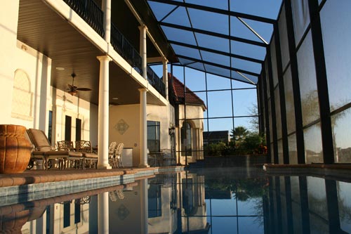 - Separate private sunbathing terrace outside pool cage.