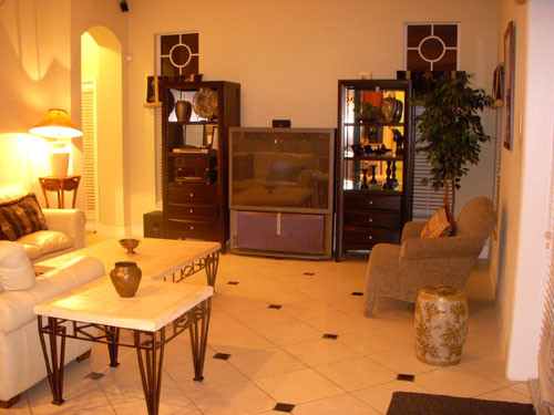 - Family Room – Jungle style with deluxe leather sofas and giant TV. Access to the swimming pool area.