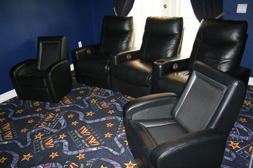 - Unique Screening Room with surround sound, luxury leather reclining chairs