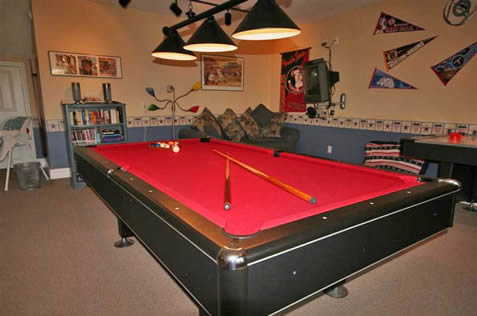 - Games Room - The extra large games room has a sports theme and is equipped with full size pool table, foosball table, darts, PlayStaion, TV, HiFi, board games and books plus a 2 person futon.