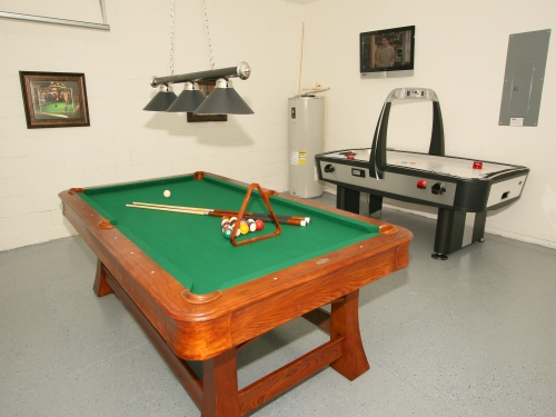 - Full size games room with Pool/Billiards table, Air Hockey and TV.